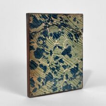 Early American cut paper silhouette with torn edge, giving the appearance of the portrait dripping from its frame. Antique frame with early marbled paper on reverse.