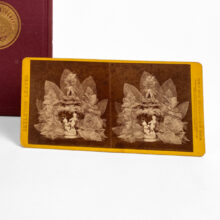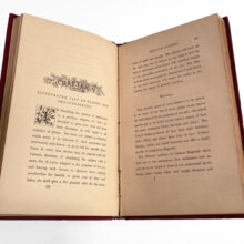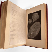 An exquisite Victorian cloth-bound book with embossed gilded cover detailing the craft of preparing skeleton leaves and phantom flowers. 96 pages, illustrated with several plates. Paired with a “Skeleton Leaves” stereoview card dated 1873.