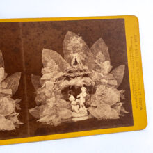 A peculiar and popular pastime for Victorians, the craft of skeleton leaves entails removing the leaf tissue without damaging the intricately laced veins. Arranged together, the layers of diaphanous leaves create a remarkable effect, especially when seen in three dimensions through a stereopticon viewer.