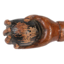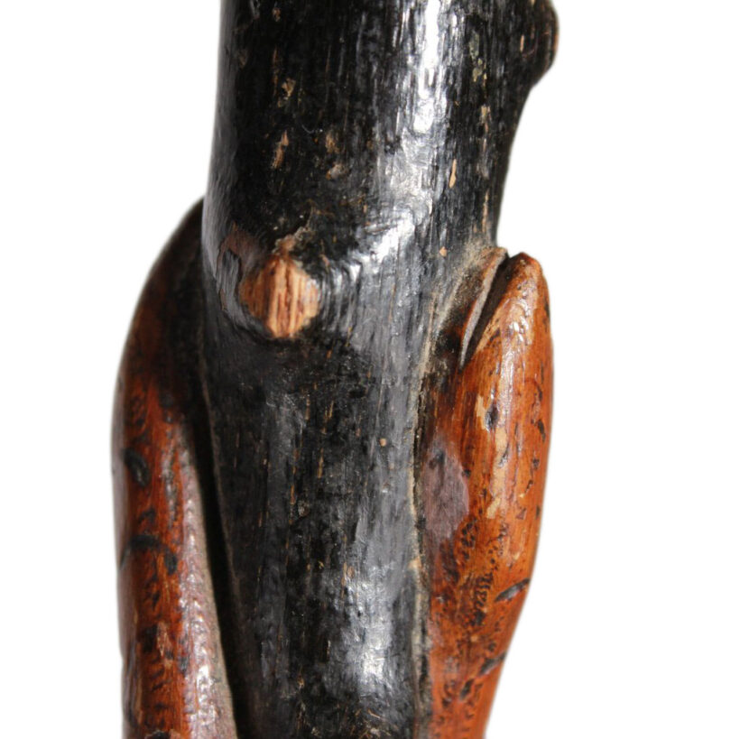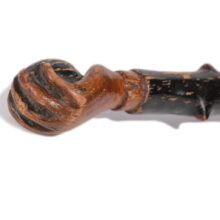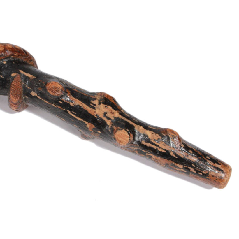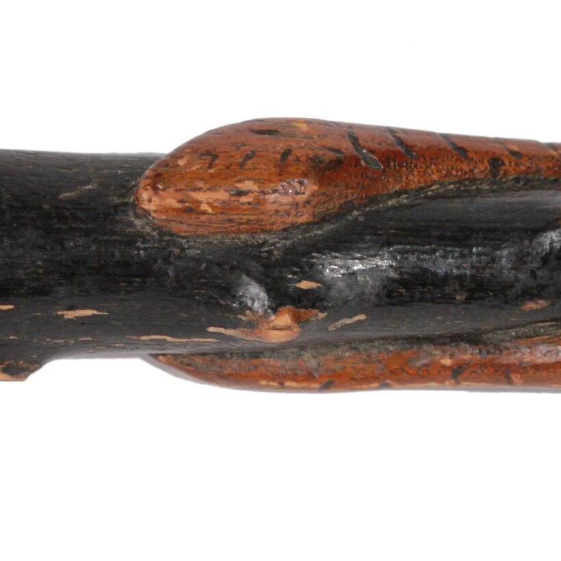 Folk art cane with hand-carved snakes and hand / pine / c. 1900