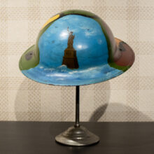 Remarkable folk art World War I U.S. Army doughboy helmet painted with the Statue of Liberty, the symbol of the 77th Infantry Division.