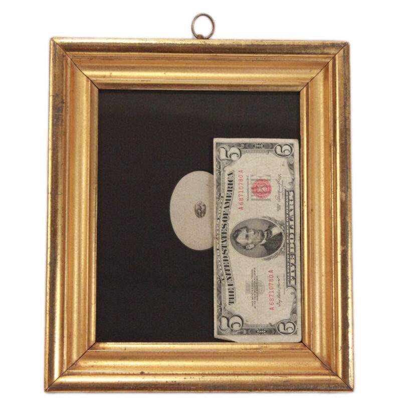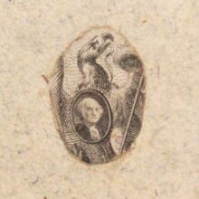 From the hand of an unknown American Bank Note Company engraver, this tiny image of George Washington surmounted by an eagle is documented as the first American President’s smallest-known portrait. Hand-etched on a copper plate for printing, the portrait was no doubt intended to demonstrate the skill of its talented creator. But the microscopic Washington also served an important purpose in the early Republic.
