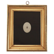 This portrait engraving of Washington was acquired from a private collection and appears to be exceedingly rare. I could not find another example or image of it in my research. The engraving appears to be listed in “The Engraved Portraits of Washington” by William Spon Baker, page 118, which identifies its origin and names it as the “smallest engraved Portrait of Washington” (out of well over 400 engravings catalogued). The engraving is both an important and curious piece of Americana, and would make a singular addition to a Washington collection. Handsomely framed in a period-appropriate lemon gold frame.