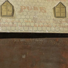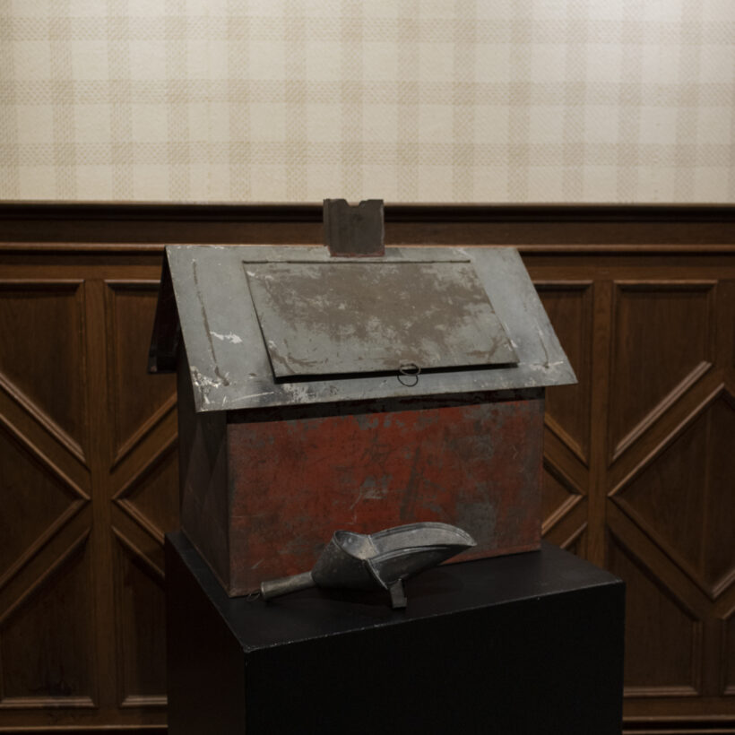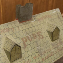 House-form store display baking powder dispenser / painted tin / c. late 19th century