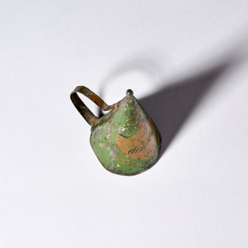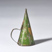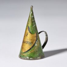 “A demain” (until tomorrow) toleware candle snuffer / painted tinĀ / c. first quarter 19th century