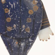 Very good condition with minor paint loss. Mounted to a wooden stand for display (easily removed).