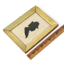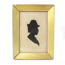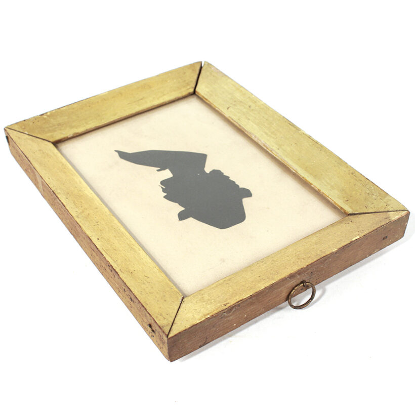 Antique silhouette of gentlemen with an extravagant mustache, c. mid- to late nineteenth century. He looks mighty like Samuel Clemens, wouldn’t you agree? The piece originated from the estate of a storied New Hampshire literary family, who could have very well hosted Mr. Mark Twain. Regardless, the silhouette has more than a little personality and is a great example of the portrait medium. Untouched and in its original lemon gold frame.