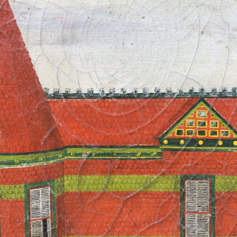 With its distinct style and evocative subject, the piece is an exceptional depiction of American vernacular architectural and among my favorite American folk art paintings to cross my path.
