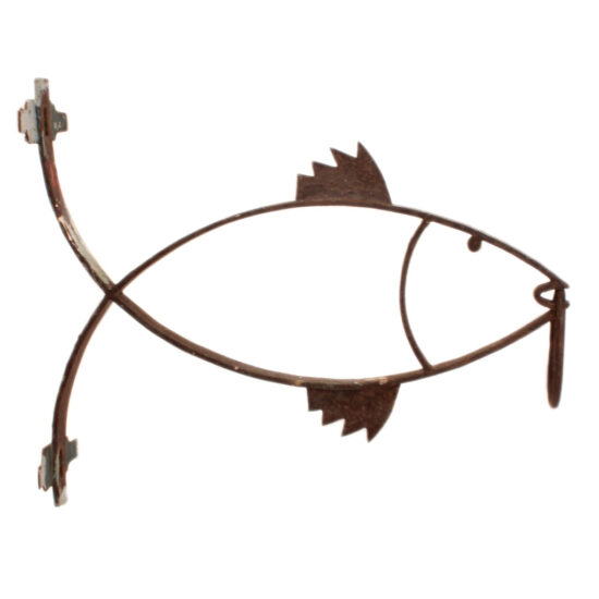 Perfect timeworn condition with paint loss, dents, and scrapes. Hangs and displays well.