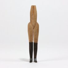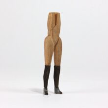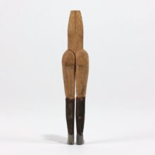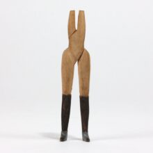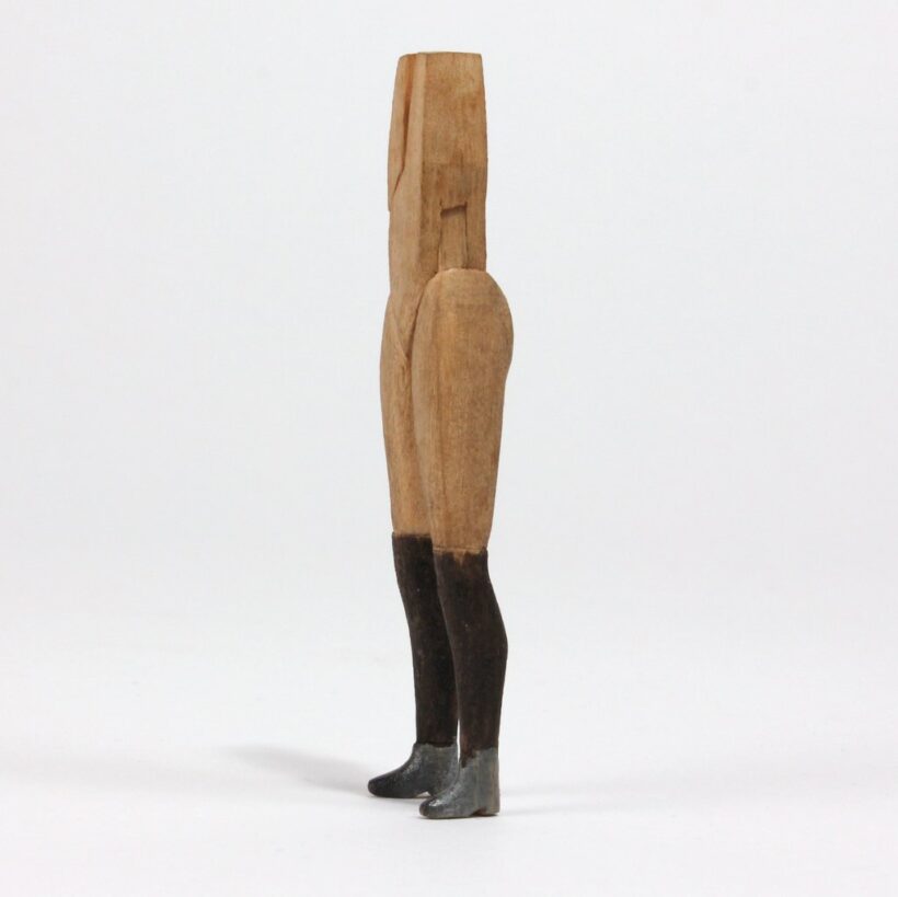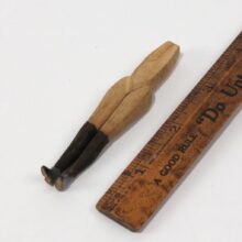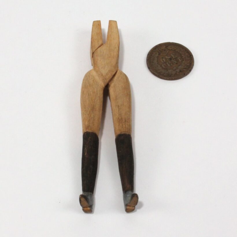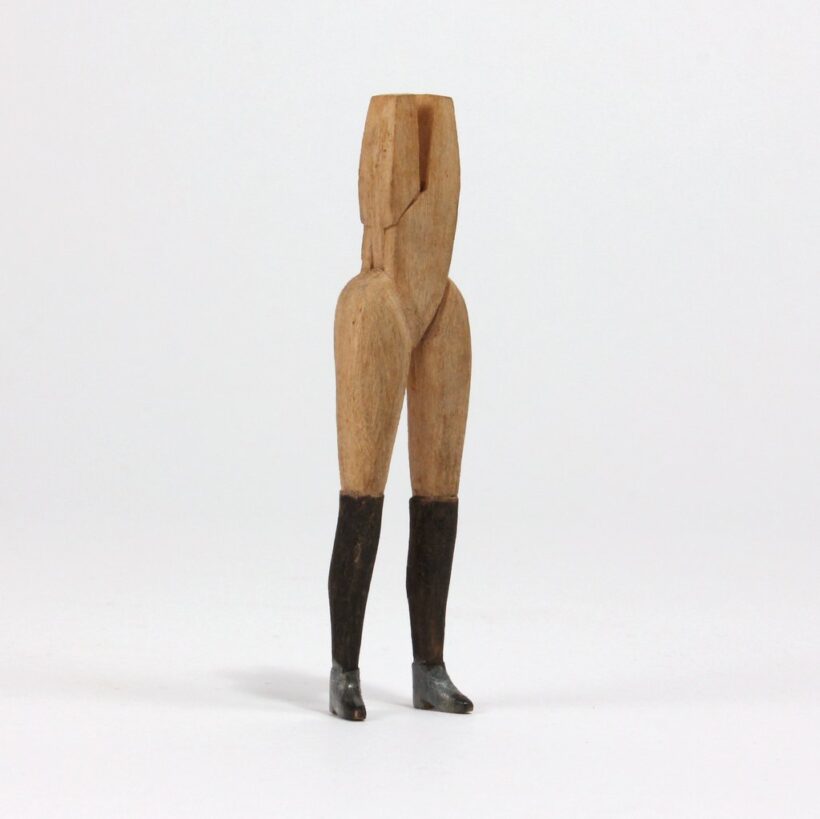 Hand-carved miniature folk art figure with female legs, high-heeled boots, and a working wrench as a head, c. early twentieth century. The skill required to carved this small form is baffling. One of the most surreal pieces of folk art to ever walk my way.
